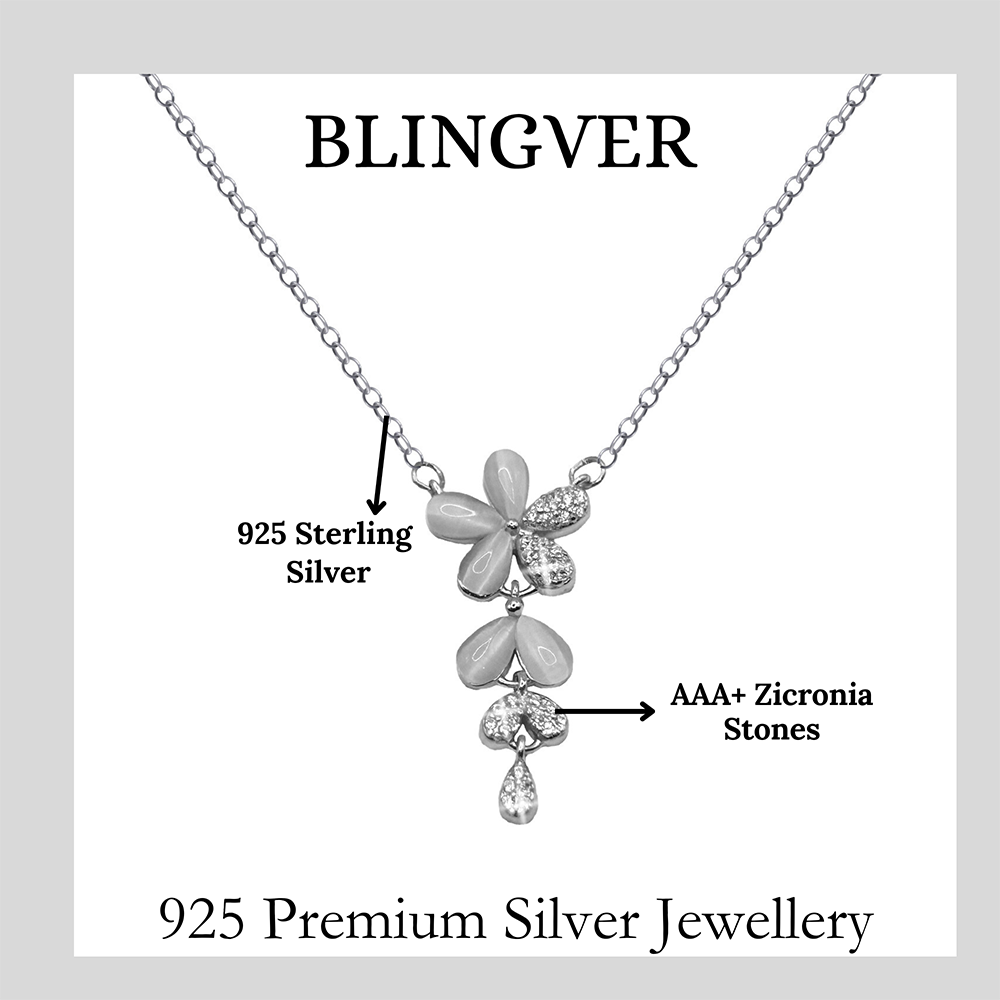 Elegant 925 sterling silver floral drop pendant with delicate petals and subtle sparkle, paired with a fine chain—perfect for everyday grace and special occasions.